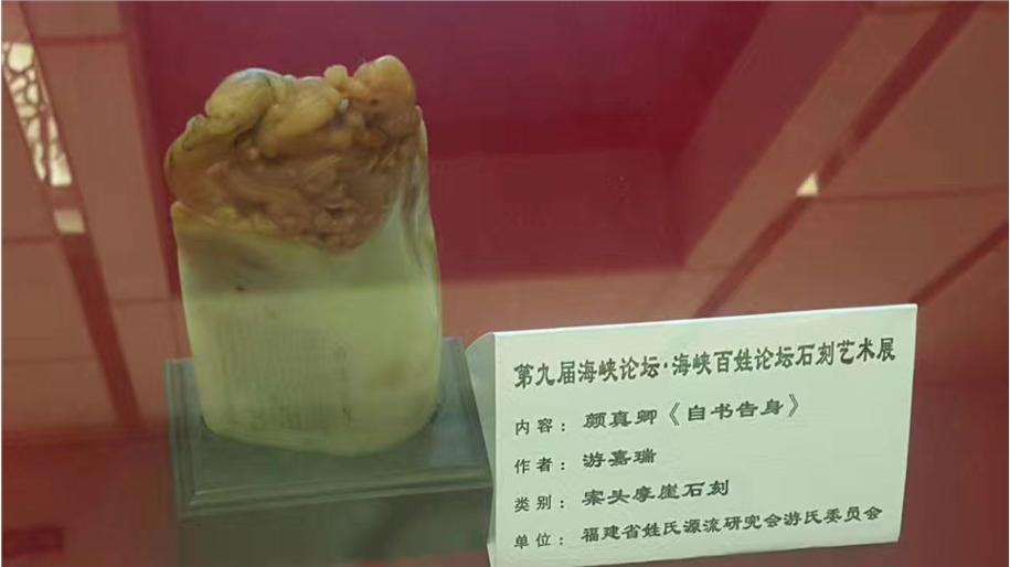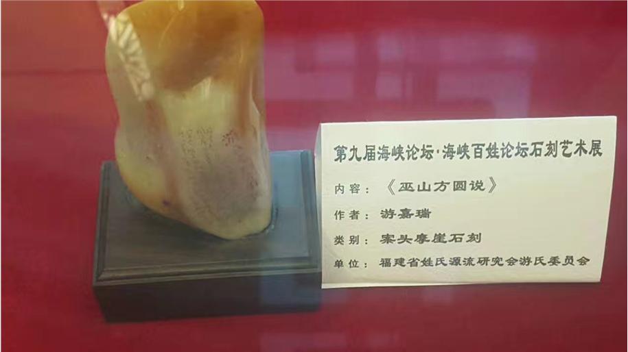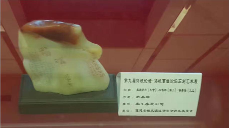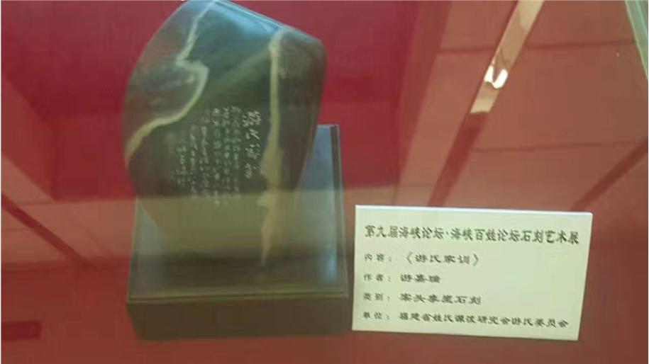 2017年6月19日,在龙岩召开的《第九届海峡百姓论坛》同时举办了《家训族规石刻作品展》。立雪书院游嘉瑞院长创作《寿山石微雕案头摩崖石刻》-“家训族规”一“九言“、“九立“、“诲子“、“苦笋颂“等六件作品参展。