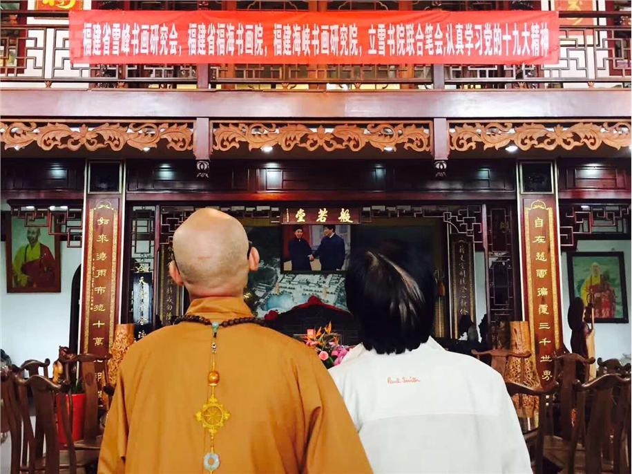 2017年11月9日,雪峰书画会、福海书画院、福建海峡书画研究院、立雪书院在旗山万佛寺联合举办书画笔会,认真学习党的十九大精神。