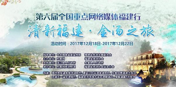 中报网福建讯(李钦峰)为积极贯彻落实党的十九大精神,践行绿色发展理念,由中共福建省委宣传部、福建省旅游发展委员会指导,福建日报社东南网、福建省旅游协会共同主办的第六届全国重点网络媒体“清新福建金汤之旅”大型采访活动,将于2017年12月18日正式起航。