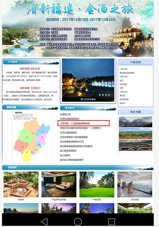 12月18日晚,由福建省委宣传部、福建省旅游发展委员会指导,东南网和福建省旅游协会主办的第六届全国重点网络媒体福建行“清新福建·金汤之旅”启动仪式暨福建温泉旅游宣传片拍摄开机仪式在福州连江贵安温泉度假村举行。