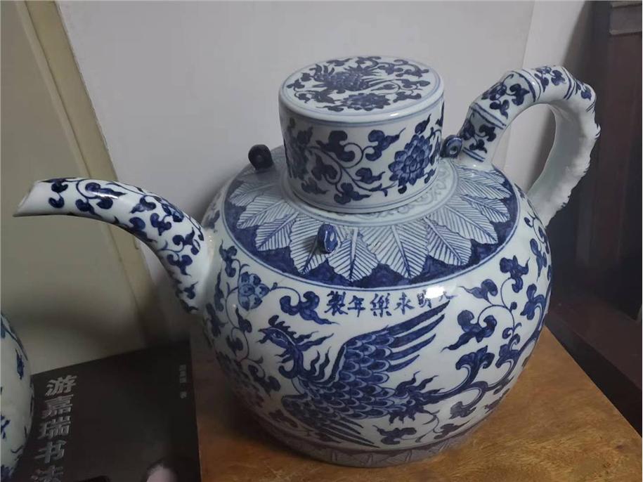 明永乐年製款缠枝莲大执壶。官窑自永乐朝开始有年制的无处不落款