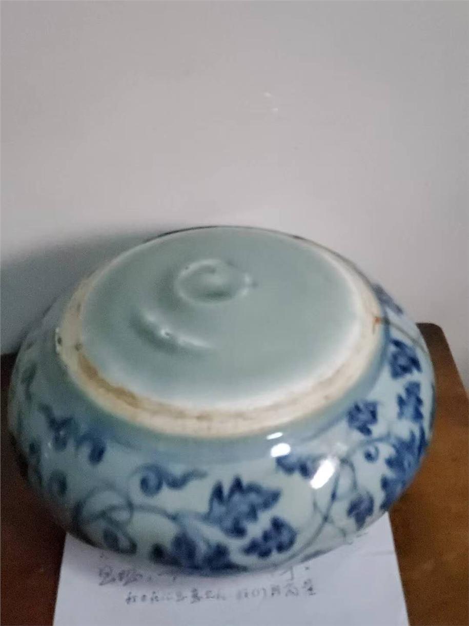 明早期青花缠枝莲笔洗(底部)