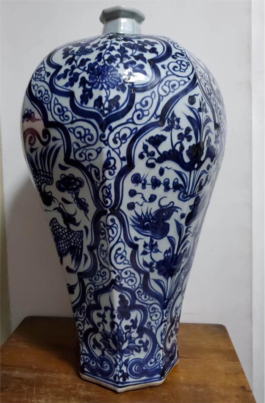 元末明初通锦缠枝莲八棱梅瓶