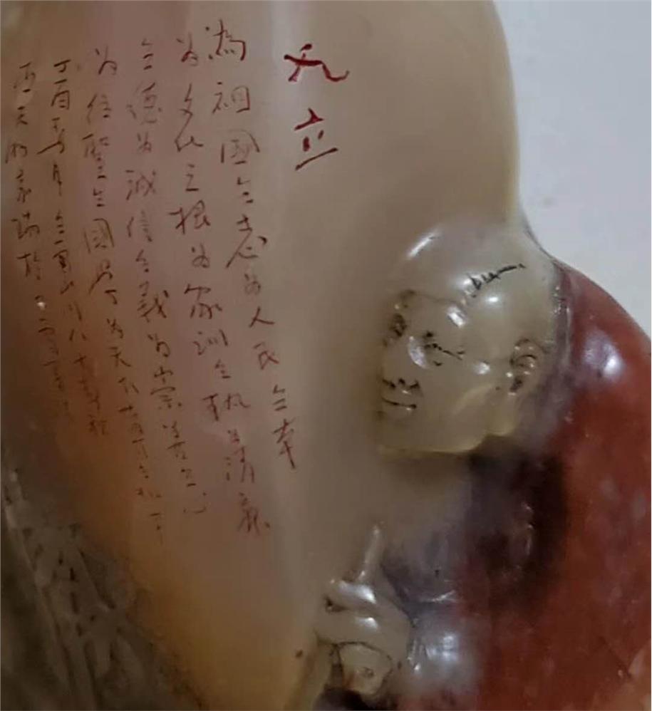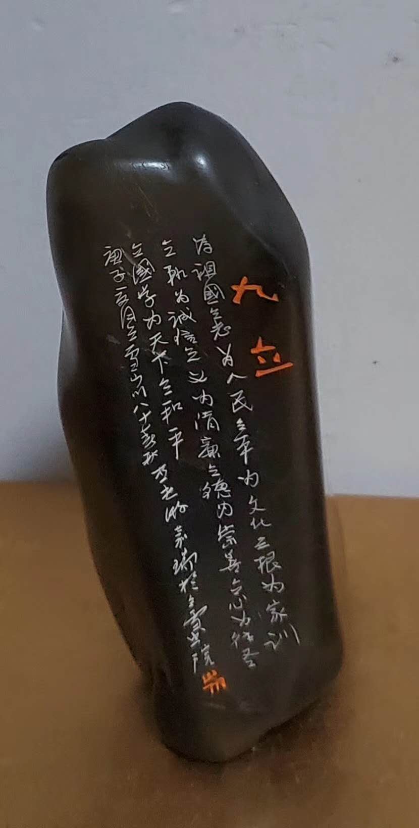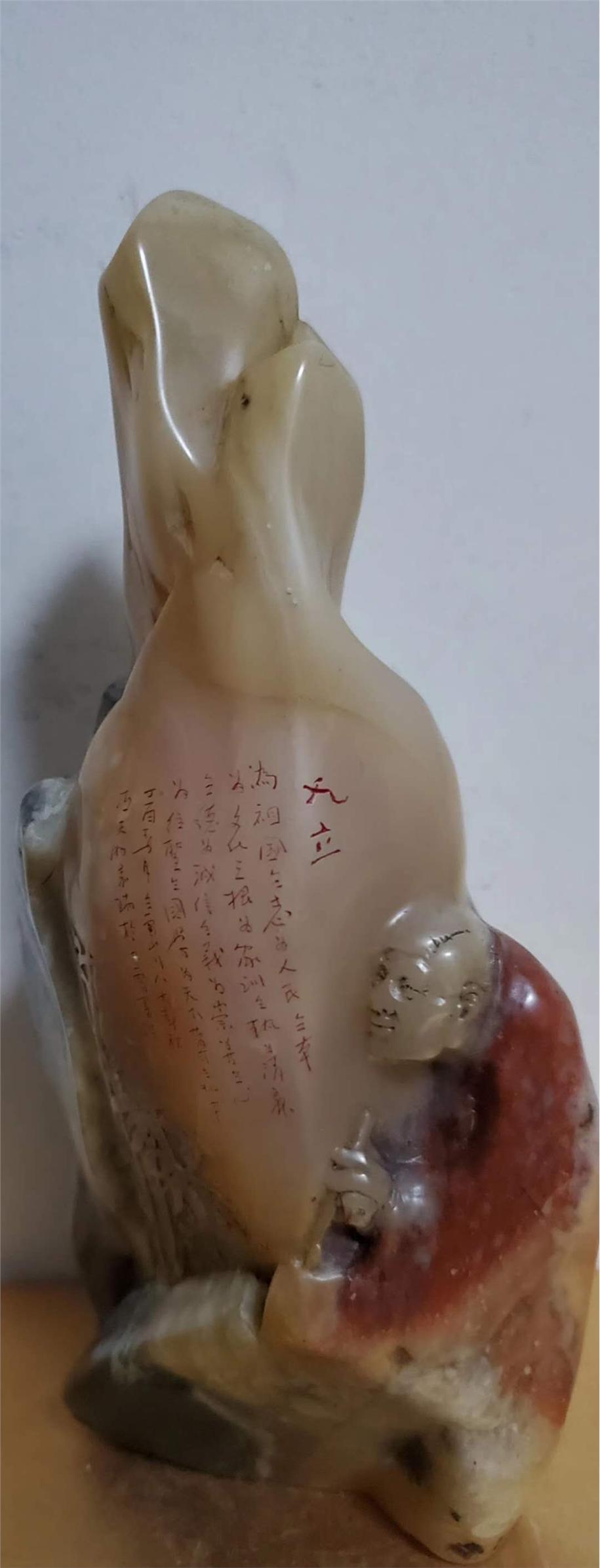 今年是中国共产党成立九十九周年,余生九秩开五,入党六十五年。今创作寿山石微雕案头摩崖石刻百件百态《九立》作品,向明年党的百年华诞献礼。幸甚!