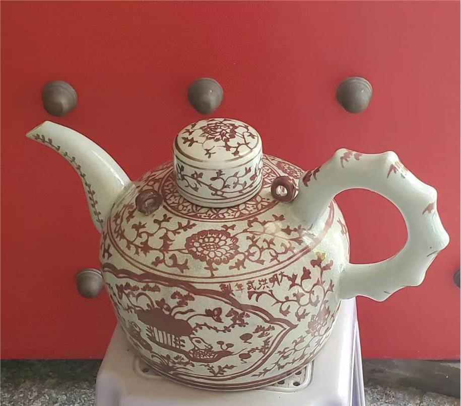 明洪武釉里红带盖执壶