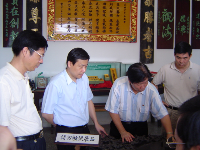 七月十四日省委宣传部副部长宋闽旺率宣传处长等一行10人,在永泰县委副书记林承超、县委常委宣传部长张承榕、县科技文体局长侯仁东陪同下参观立雪书院,游嘉瑞亲自逐一展厅作了介绍,并冒着酷暑参观了立雪碑林,他们感到立雪书院藏品之丰之美,极具传统文化品位,给予人启迪和教育,不愧是一个德育基地。 [align=right](立雪宣)