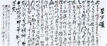 游嘉瑞的故里永泰巫山,青山绿水,松篁满眼,藤萝竞秀。长期在大自然中领悟出诗有诗道、书有书道、石有石禅、道法自然,并注入书艺的创作活动,加上他所具有的浓厚文学素养的优势,书卷之气溢于行间,从而形成超轶萧散、情趣交融的书风。悟出“云无定蒸蒸千万,书无定法法自在”的道理,这算是深得书法和其他艺术之要旨。艺术的风格,固然是成熟的标志,是个性特征的形成,但它和凝固、单一、刻板不相干,而是摇曳多姿、富有变化,绝不拘于一格,定于一法,固于一式。艺术上的统一与多样是辩证的关系。只能对客观描摹的现象作深刻入微的把握,才能创造出富有生命力的艺术品。游嘉瑞首先对汉字书法的意象性、哲理性及多样性等特定因素和品格进行深沉的思考,并融进自己的情感,达到一种自然诚实的自我人格的流露,以笔有“快马入阵”的气魄、磅礴的气势、飘逸的轻灵,形成了自己的艺术风格。