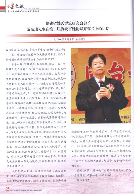 福建省姓氏源流研究会会长游嘉瑞发言